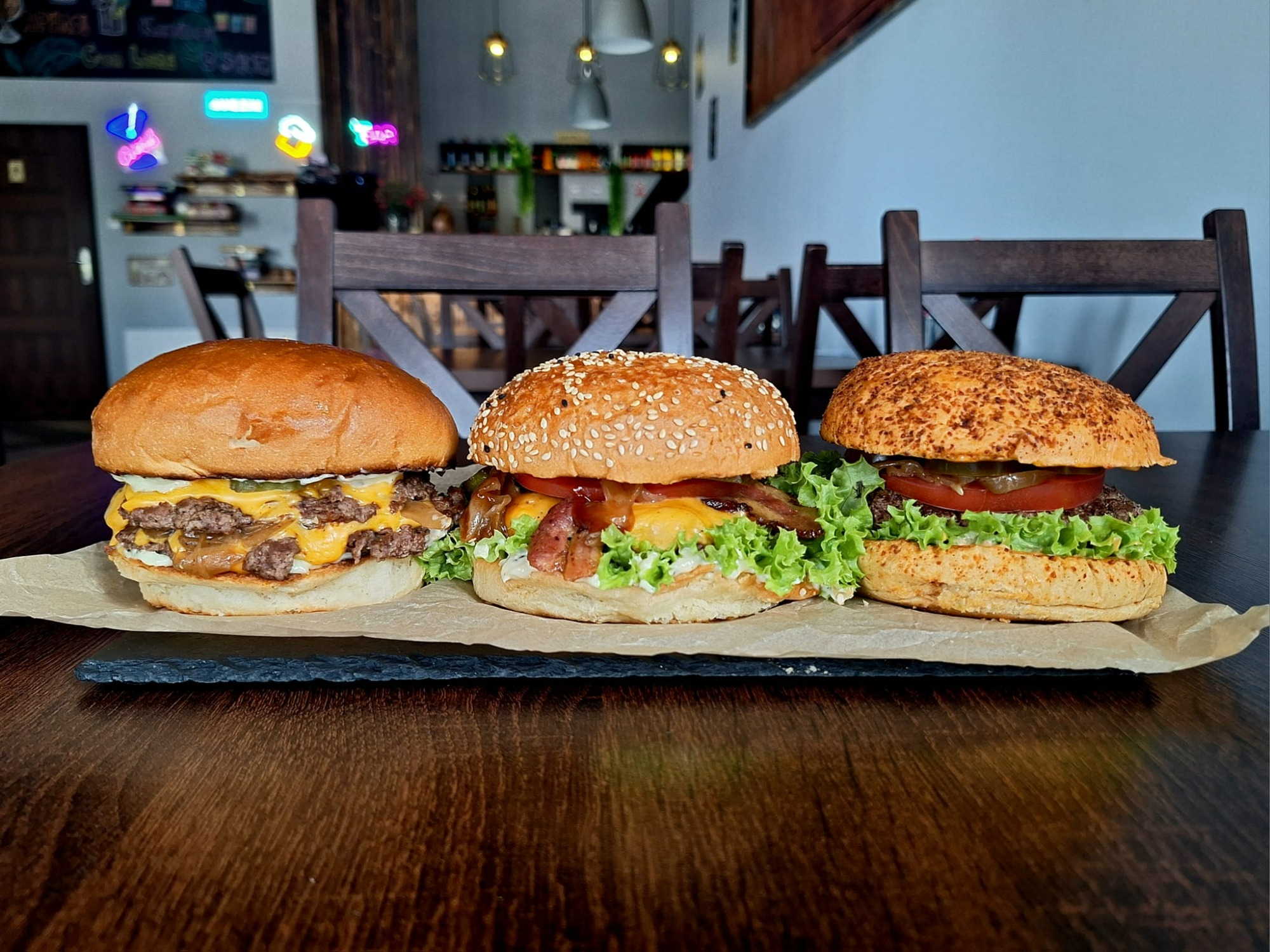 Nasze burgery to połączenie świeżości i jakości – zawsze w towarzystwie idealnie wypieczonej bułki, świeżych warzyw i aromatycznego sosu! Jeśli masz ochotę na coś lżejszego, nasze tortille z różnorodnymi nadzieniami na pewno Cię nie zawiodą! 🌮😋